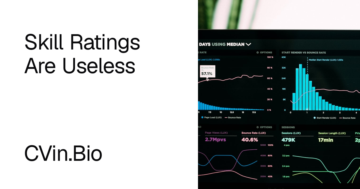 For several years a terrible design trend has plagued the professional hiring market. Candidates frequently download highly visual templates that encourage them to rate their own technical skills using graphic progress bars or abstract star ratings. You have likely seen profiles where a candidate gives themselves four out of five little gray dots for their mastery of Javascript.